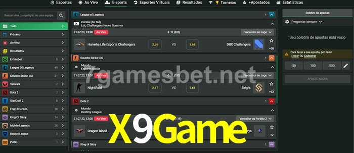 A aposta X9Game oferece aos jogadores a experiência mais conveniente de apostas em eSports!
